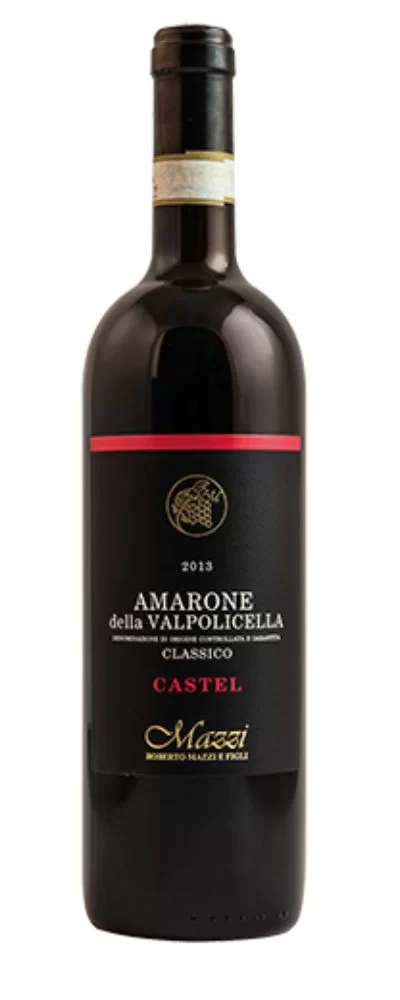 L’amarone “Castel”, viene prodotto dalla cantina Mazzi situata sulle colline di Negrar. E’ ottenuto da un mix di uvaggi autoctoni del posto tra cui: Corvina, Corvinone, Rondinella e Molinara. La vinificazione avviene per fermentazione con lieviti selezionati a temperatura controllata (24°C) in inox con leggera rottura giornaliera del cappello di vinacce, ad intervalli o continuo, tramite rotazione interna dello stesso. L’invecchiamento del vino è in legno per 30 mesi più ulteriori 12 di affinamento in bottiglia. L’appassimento avviene ancora con metodo naturale in cassette e graticci in locali ben aerati con controllo periodico dello stato di sanità delle uve e pigiatura secondo l’annata a metà dicembre o inizio gennaio.