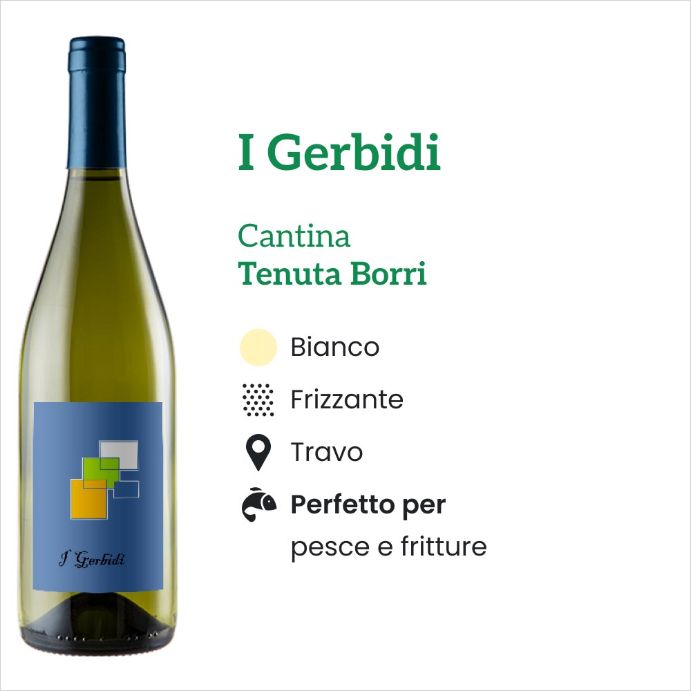 Trattandosi di un vino dal carattere fine e delicato, l’Ortrugo Frizzante “i Gerbidi” della Tenuta Borri si sposa alla perfezione con i piatti a base di pesce (meglio se cotti al vapore) o con i primi piatti con sughi leggeri. L’abbinamento migliore rimane però, senza ombra di dubbio, quello con le fritture di pesce. La freschezza dell’Ortrugo Frizzante “i Gerbidi” bilancia perfettamente questa tecnica di cottura più grassa, creando al palato una perfetta armonia.