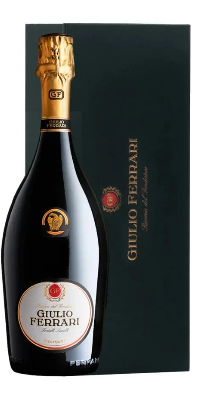 Giulio Ferrari Riserva del Fondatore. Un Trento DOC ottenuto con uve selezionatissime di Chardonnay raccolte a metà settembre nei vigneti di proprietà della famiglia Lunelli alle pendici dei monti che incorniciano Trento, fino a 600 metri di quota, esposti a sud-ovest. Successivamente le uve vengono fatte fermentare in tini di acciaio; in seguito avviene la rifermentazione in bottiglia del mosto. La maturazione avviene per oltre 10 anni su lieviti selezionati di proprie colture e durante questi anni avviene la il remuage seguito poi dall’aggiunta del liqueur d’expèdition. L’invecchiamento ultradecennale sui lieviti conferisce un finale di gran complessità, che colpisce per eleganza e freschezza, dando vita così al mitico Giulio Ferrari Riserva del Fondatore.